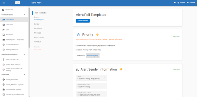 When you are satisfied with the alert preview and all required fields are complete, click the Send button. Users will be prompted to confirm the send action and can view the total recipient count before sending. Once they click Yes, the alert will be sent out. Once an alert is sent, it cannot be modified. You will also have the option to save this alert as a Template on this screen prior to sending if you have the permission in your Role.