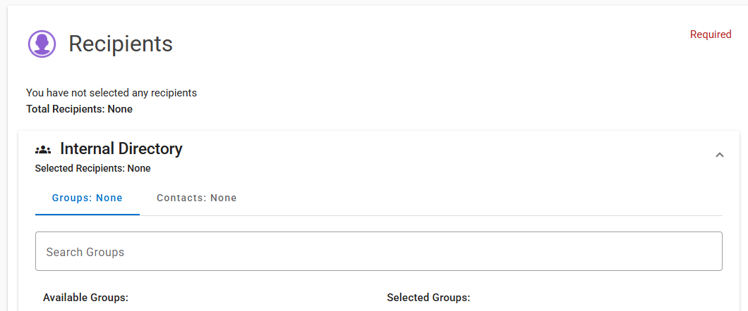 - Some users may have auto-populated recipients based on their role. If this is the case, the recipient group will auto-populate on this card.