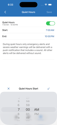- Quiet Hours: Users can configure a time window during which non-emergency alerts are silenced. Device privacy settings override app settings if notifications are disabled system-wide.