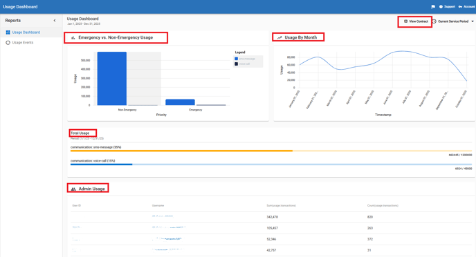 The dashboard provides clear breakdowns of Emergency versus Non-Emergency alerts, detailed monthly usage trends, and total usage metrics that align with your organization’s contract provisions. Additionally, usage data is segmented by individual Administrator, supporting accountability and streamlined management of alerting activities. This enables organizations to monitor communication effectiveness, identify patterns, and ensure compliance with internal protocols and contractual limits.